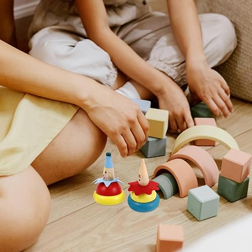 Garneck Pack of 2 Wooden Spinning Tops for 1 Year and Above - Colourful Clown Humming Spinning Top as Educational for Nursery and Home