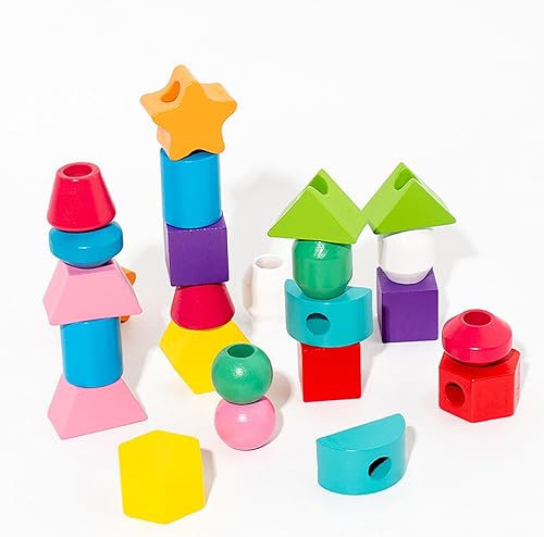 Ideal Gifts for Boys Girls: The wooden montessori toys set is made of non-toxic wooden material, durable and safe for kids. All wooden blocks are lightweight, suitable for toddlers' small hands to grasp. It’s an ideal gift for kids age 2 3 4 5. Nice toddler toys age 2-4, lacing beads for kids ages 3-5, developmental wooden toys for 2 year old boy girl
