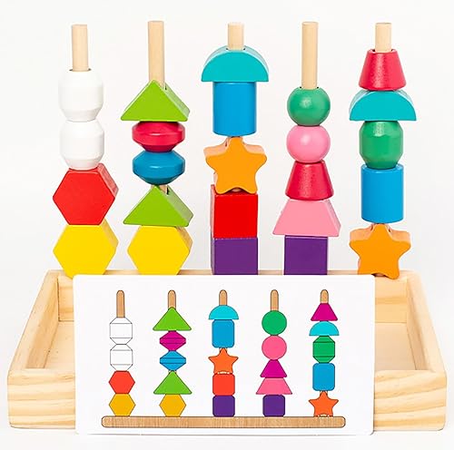 Multifunctional Montessori Toys:montessori wooden beads sequencing toy set, stacking blocks & lacing beads & matching shape stacker for 2 3 4 5 year old STEM preschool learning montessori toys gifts for kids boy girl toddler