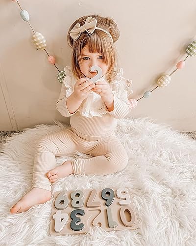 SIMPLE TO GRASP NUMBER PIECES: The chunky design of each number piece ensures that your child can effortlessly grip, hold, and manipulate them. The pieces have been crafted to fit comfortably into little hands, and the soft silicone material provides a soothing tactile experience. The number-shaped puzzle can be easily sorted and reassembled on the board, making it a fantastic educational toy for developing sorting and stacking skills.