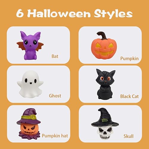 6 Halloween Styles - You will get 6 styles bath toys, they are designed as black cat, pumpkin, ghost, bat, pumpkin hat, skull, all in Halloween theme, very cute