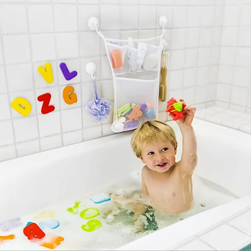 Package information: The package includes a baby bath toy organizer with white color. It can be used to store baby's bath products and toys and keep the bathroom clean and tidy.