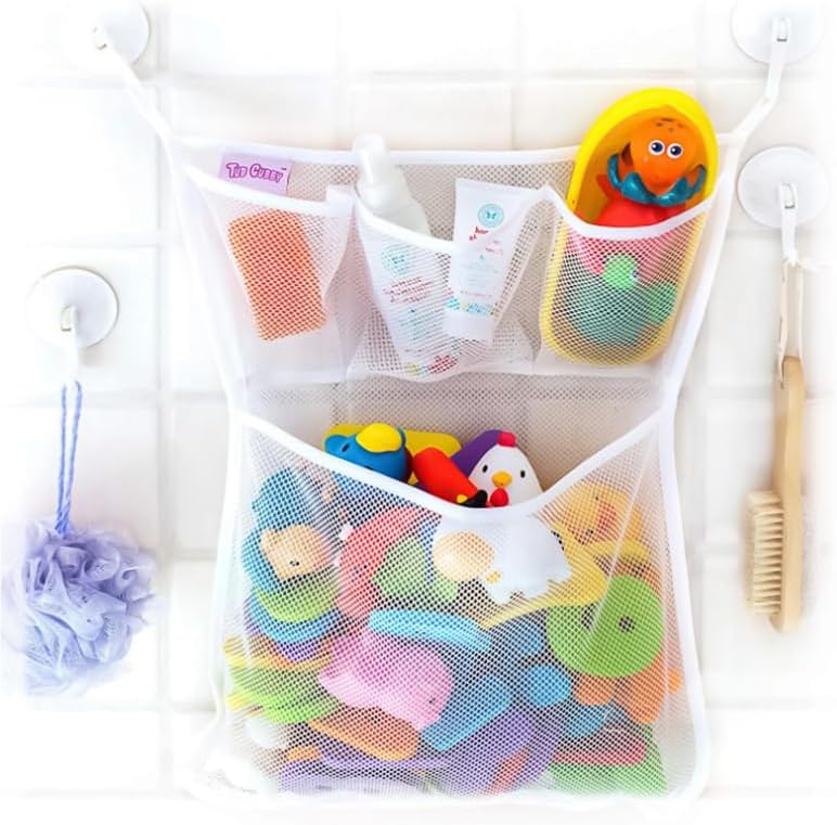 Easy to install: The baby bath toy organizer does not need to be installed, and it can be directly hung on the hook in the bathroom, which is simple and convenient to install. It is a very easy-to-use bathroom accessory, which allows you to easily find the toys.