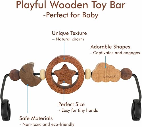 SENSORY DEVELOPMENT WOODEN TOY BAR: iGRATENS toy bar is specially designed for Baby bouncer, it has rich natural wood colors, with cute natural elements of moon, stars, and clouds. It continuously attracts a baby's interest and focus, stimulating visual and tactile perception, enhancing curiosity and the desire to explore, and promoting early cognitive development. iGRATENS durable wooden toy bar is not only a special toy but also an important companion for baby's early development