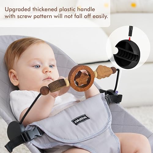 UPGRADED NATURAL WOODEN TOY BAR: iGRATENS Baby toy bar uses a threaded swivel connection, which is more solid, and the clips have been upgraded and thickened, which are not easy to break. iGRATENS toy bar is made of beech, black walnut, sapele, and lotus wood, which are safe, non-toxic, and do not contain paints. And they are all hand-polished to ensure a smooth surface, no sharp edges and corners, baby chewing and gripping safe