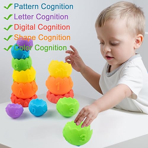 Learning &Sensory Toy, Montessori Toy: These educational blocks feature numbers, different animals, shapes, colors, and olympic elements design.
