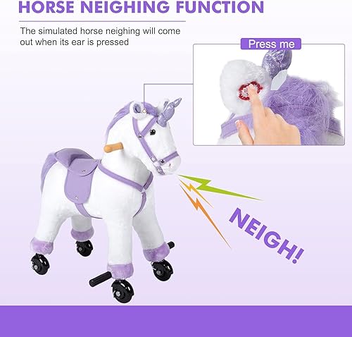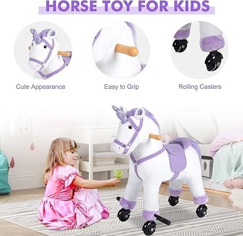 Baby Rocking Horse - Ride on Unicorn Toy with Safety Saddle and Rolling Casters, Horse Riding Toy for Boys and Girls, Unicorn Plush Kids Ride with Realistic Sounds, Purple