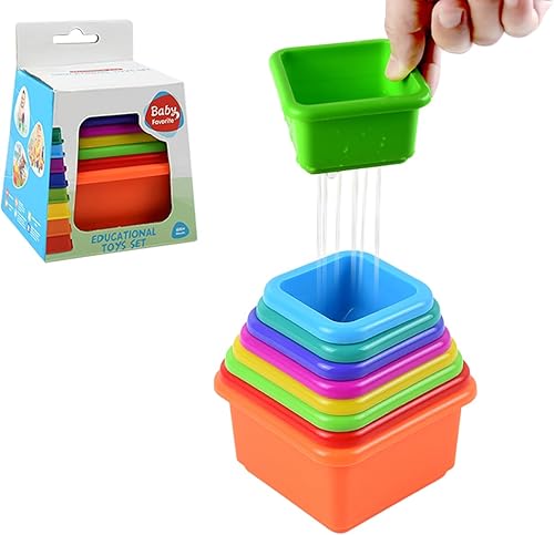 Package includes 8pcs baby stacking cups toy in different colors, which attract babys' attention and promote visual development.