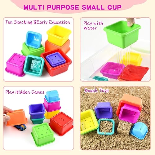 This stacking cup toy set can increase parent-child interaction and improve children's learning skills and imagination. The lightweight and compact design makes them travel-friendly.