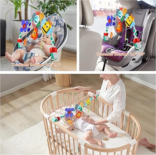 Baby Stroller Toys with Sensory Activity Toys:Designed with vibrant colors and a playful layout, this stroller toy offers a variety of detachable toys that encourage the development of motor skills and enhance hand-eye coordination.