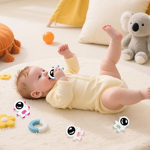 Astronaut styling with colorful intersperse catches the eye of the baby