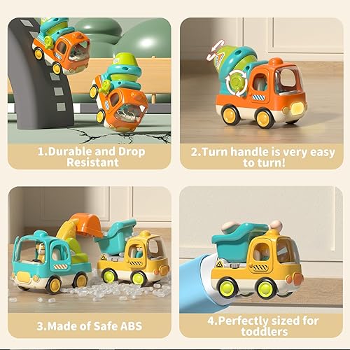 Safe ABS Material: Every baby truck in this set is made of sturdy, child-safe ABS material. They are robust enough to withstand rough play, ensuring these toy trucks for toddlers 1-3 boys and girls stand the test of time