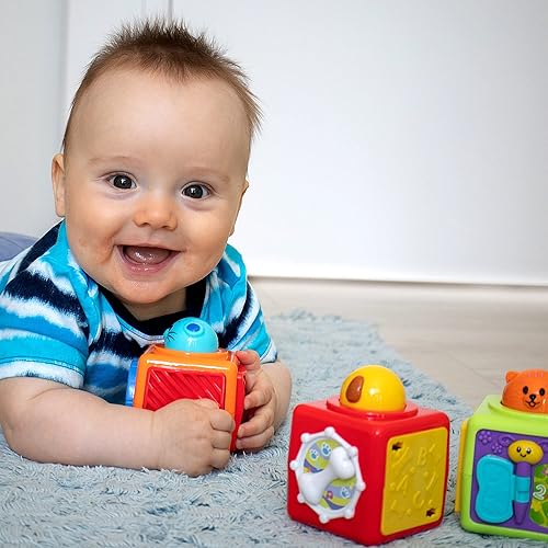 GROWS WITH YOUR CHILD – Babies and toddlers play with toys in very different ways as they grow. These activity cube toys are open-ended, letting children interact with them in many ways, from basic manipulation through stacking to imaginative play using the animal characters.