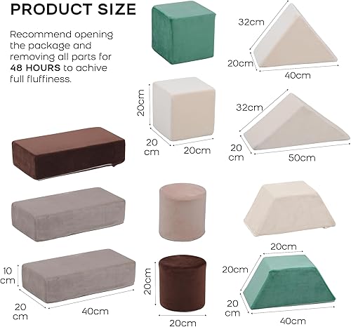 SAFE & KID-FRIENDLY DESIGN: Crafted from high-density foam, these lightweight blocks are easy to move and gentle for safe indoor play. No sharp corners, no heavy wooden parts. The hidden zippers reduce choking hazards, offering peace of mind for parents.
