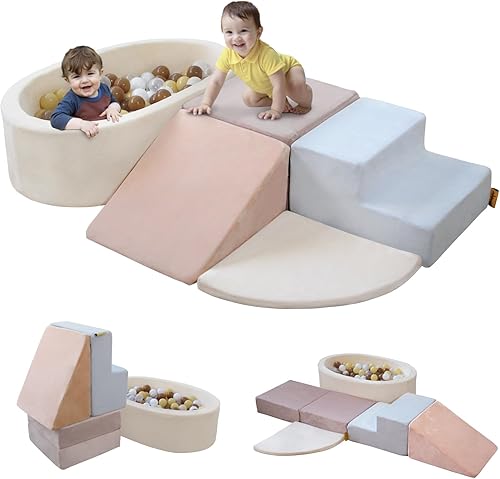 FUN & VERSATILE PLAY OPTIONS: Our soft foam blocks provide endless play possibilities. The set includes a ball pit (without balls) that can be filled with toys or balls. The tunnel foam piece is perfect for crawling through, while the square blocks can be stacked or combined to create a playtable. Ideal for climbing, crawling, sliding, and stacking, these blocks help develop motor skills and coordination.