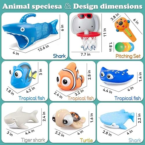【"Shark Attack!" Bath Time Fishing Set】 - Includes 1 Giant Shark Net & 6 Soft Sea Animal Toys for Exciting Underwater Escape Games, Makes Bath Time Fun While Developing Hand-Eye Coordination