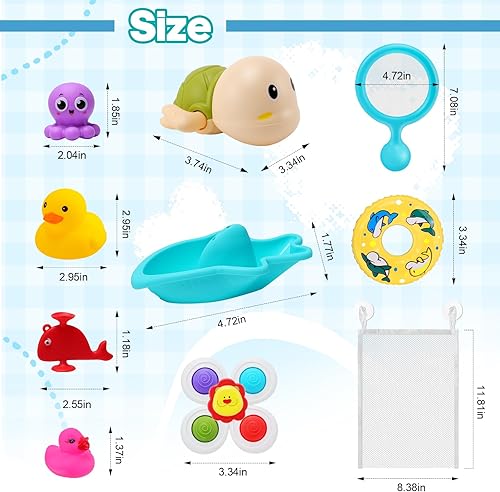 【Easy to Storage】An included suction cup storage net can be attached to the bathroom wall. After bath time, your baby can tidy up the bath toys into the net with you, which is convenient for organization, helps cultivate your baby’s sense of tidying up, and keeps the bathroom clean and orderly