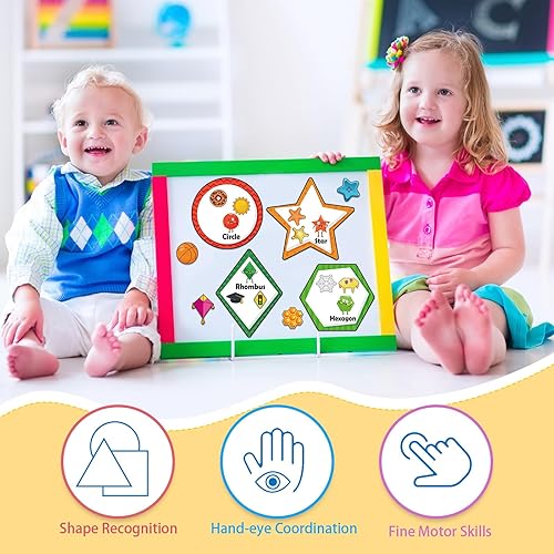 Multi Purpose Sorting Mats: thanks to 10 versatile sorting magnet mats, ideal for teaching shapes, and object matching in an engaging and interactive way; Perfect for toddlers and preschoolers, this engaging shape matching toy helps children develop essential skills, such as shape recognition, fine motor skills, hand eye coordination, and problem solving