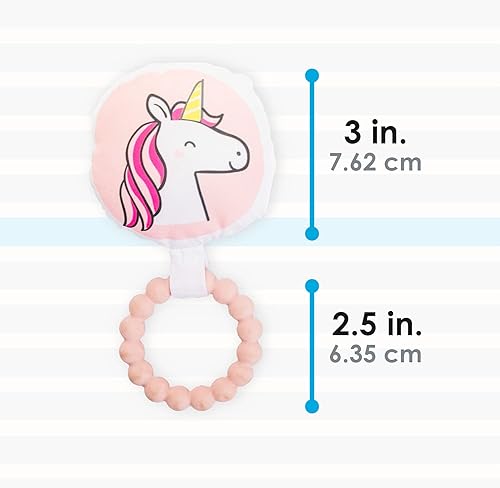 SOFT TEETHING TOY: Fun interactive materials keep baby engaged. This toy features soft for tiny fingers to explore and a textured silicone teether.