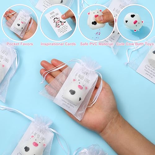 Thoughtful and Funny Design: the cow bath toy with interesting pun cards are more appropriate for giving to others to express your gratitude and encouragement; Besides, pressing the toy cows will make a crisp sound, which can not only relieve stress and bring vitality, but also float on the water for your bath Toy
