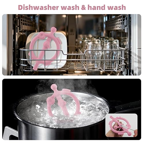 Easy to Clean:Baby teething toys are soft and durable. Resistant to high and low temperatures, can be boiled, steam or refrigerated.Safely clean by handwashing, dishwashing, boiling, or steam.Please clean it before use