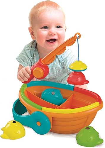 The basket for collecting the fish is also a floating boat that the child can play with while bathing