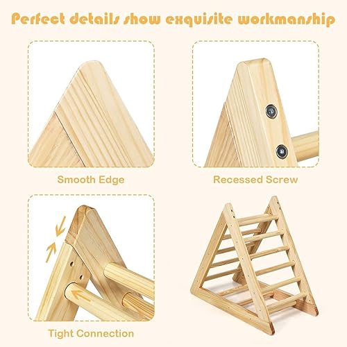 【Easy to Assemble & Exquisite Workmanship】 Comes with full detailed assembly instructions step by step. Parents can quickly and easily put all the parts together. In addition, it has passed ASTM certification sure the safety of kids. This wooden triangle climber is perfect for home, kindergarten or day care. All edges are designed with rounded corners, making it safer for children.