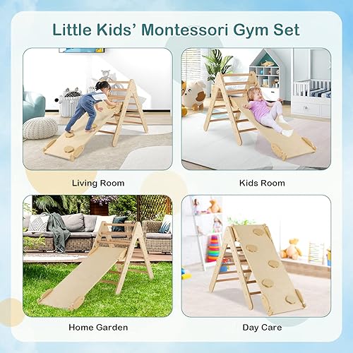 【Montessori Triangle Climbing Toys】 It is the best climbing toy for cultivating children's independence and autonomous exploration ability! The triangle ladder can be tilted as needed to climb and slide. It allows for natural gross motor development and freedom of movement. Toddlers can practice climbing and find their way over the top and slide down, while 5 or 6 year old can construct different combined shapes or build forts through their imagination. Max load 110Lbs.