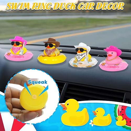 Summer Car Rubber Duck: You will receive a cute summer duck adorned with a transparent swimming ring, mini guitar, sunglasses, and bandanas, which enhance its charm and make it look more fun.