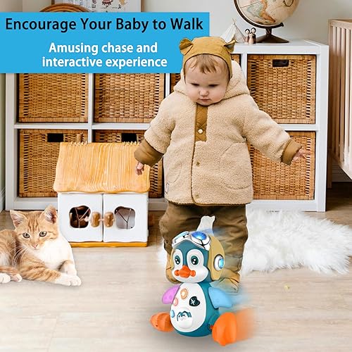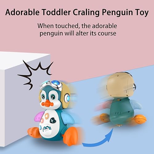 【Crawling Penguin Baby Toy 】Watch as it zooms around just like a real penguin! This clever toy swiftly changes direction when it encounters obstacles, captivating babies aged 6-12 months. They'll eagerly crawl towards it, while toddlers aged 1-2 years are inspired to take their first steps. An ideal companion for little ones learning to crawl and walk.