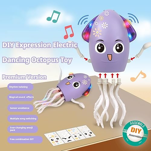 【DIY Assembly Fun & Customizable Expressions】: Kids build their own octopus squid baby toy! Great for fine motor skills. Includes interchangeable face accessories to create a unique dancing squid baby toy friend with different moods. Includes: 1x Dancing Octopus Toy | 1x USB Cable | 4x Interchangeable Face Accessories |8 long legs and 2 short arms. It requires parents and children to DIY assemble together (just align the long leg buckle with the small black hole at the bottom of the octopus head, align the arm with the arm button buckle, and press it gently)