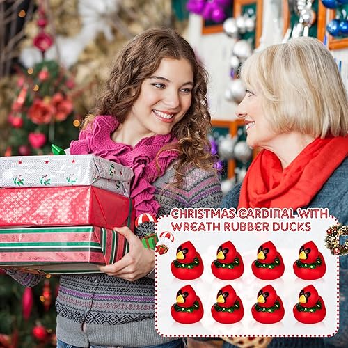 Size for Convenience: with a size of approximately 2 inches, this Christmas cardinal bird with wreath rubber ducks party supplies provide a compact solution to your festive fun time needs; Their size makes them suitable for incorporating into different holiday related party games