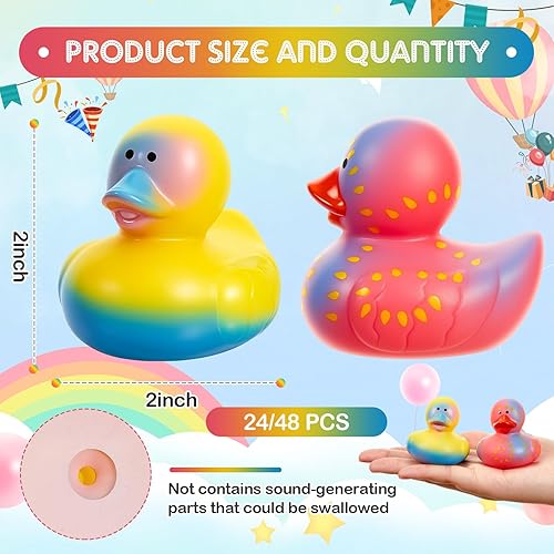 Pastel Design: these rubber ducks feature a bright gradient tie-dye pattern with rainbow and pastel mixed styles; Perfect for adding a joyful and fun atmosphere to a party
