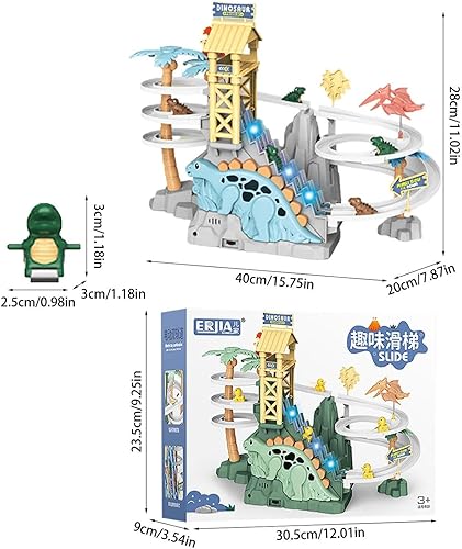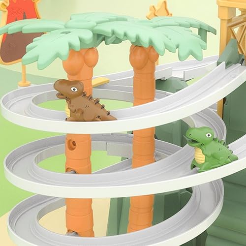 【An Immersive Dynamic Dinosaur Experience】Ignite your child's imagination and transport them into an electrifying world of adventure with our Dinosaur Racing Track Toys. This exciting electric climbing stairs track is a captivating play set that features five adorable and colorful dinosaurs. As soon as the toy is turned on, vibrant lights illuminate the track, accompanied by lively music effects that add to the excitement.