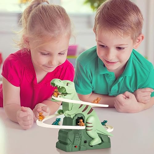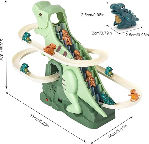 Dynamic Design Experience: Enjoy an immersive track racing experience combined with real ladder climbing action, dynamic lights, and captivating music that bring the electric dinosaur to life for kids