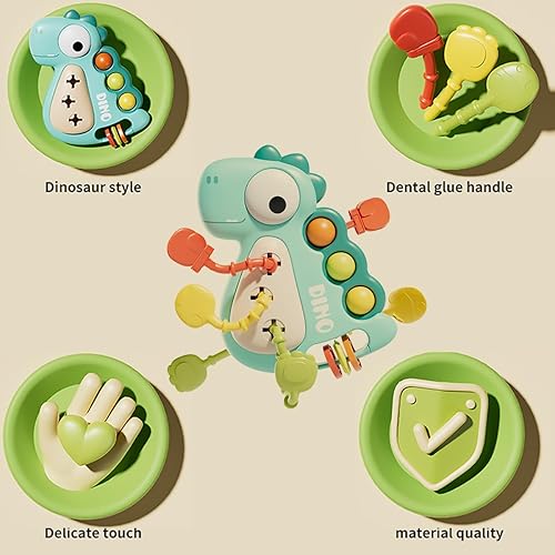 Multi-Sensory Toys Pull String Silicone Dinosaur Toy: different strings, smooth edges in shape of cute octopus, by pulling up and down silicone ropes, pressing and pushing buttons, your baby will be occupied and entertained for hours while also developing their fine motor skills, sensory perception, and exploring the cause and effect through play