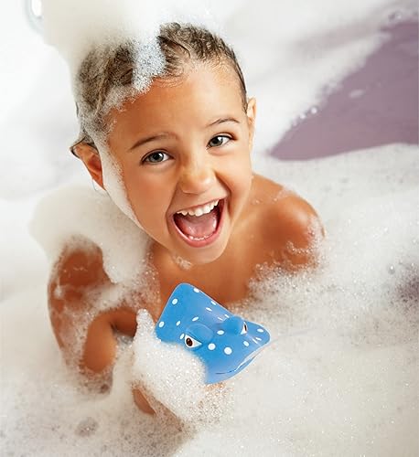 INCLUDED WITH THE PURCHASE OF BATH SQUIRTER TOY - Includes 1 Blue Manta Ray Bath Buddy Squirter Toy for kids. The ocean life bath toy features smooth, soft & rounded edges to ensure the safety of children while enjoying fun water games. Designed with lively cartoon eyes & white spots. The adorable manta ray shoots out water from a tiny hole when squeezed. Manta ray baby float squirter measures 3 inches, perfect fit for babies' little hands.