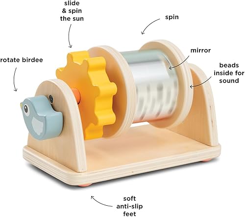 Sensory-rich spinner toy – Features different textures, playful shapes, and a mirror to stimulate your baby’s senses