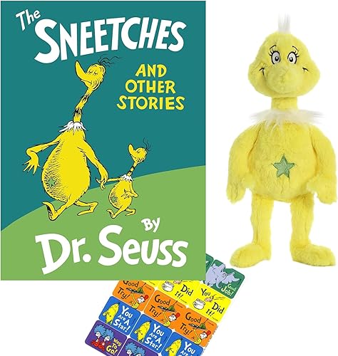 Kit includes a hardcover The Sneetches and Other Stories by Dr. Seuss, Sneetch stuffie book buddy and stickers for your special one. Safe for all ages : however the story is best for ages 4 +. This is a great way to encourage hands-on learning and share the love of reading. Popular for boys & girls.