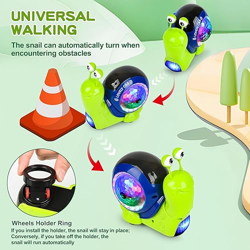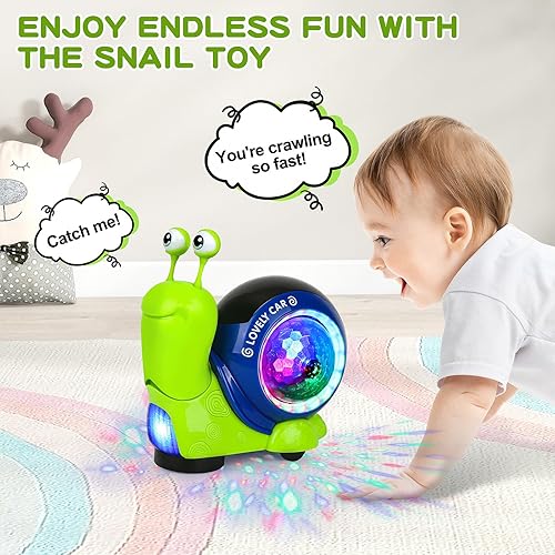 【Lights and Music】Crawling snail toys feature a built-in music system and a colorful LED rotating glowing ball in its belly. It will light up while the music is playing, and various songs will promote the kid's auditory development.