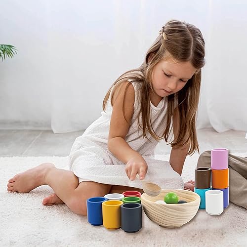 What You Get: These learning toys for baby include everything your little one needs for a complete and fun experience, with 12 x colorful cups, 12 x matching balls, an easy-grip wooden spoon with ergonomic handle, large wooden bowl plus a convenient drawstring bag for easy storage!