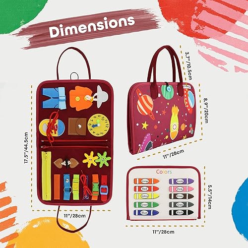 ON THE GO BUSY BOARD: Our busy boards promotes learning and problem-solving skills in toddlers aged 3-5. Portable and lightweight makes it easy to pack for trips is perfect for plane travel activities and busy book for toddlers 3-5.