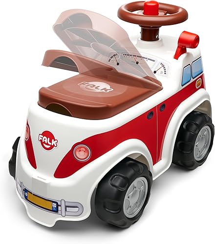 Falk Truck Vehicle with Opening seat and Steering Wheel with a Horn, Push Ride-On Toy for Toddlers 1-3 Years (Ambulance)(Combivan Retro)