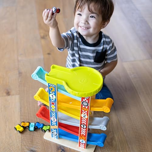 Fat Brain Toys Zigzag Racetrack - Number-Learning Car Tower for Preschoolers