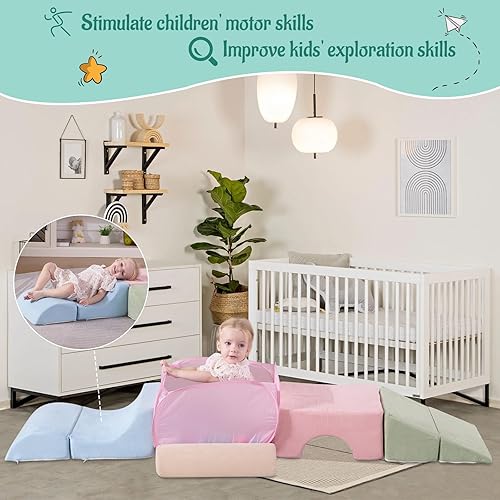 Comfort and Safety: The exterior of the foam climbing playset is made of soft suede velvet, which brings kids a soft and comfortable touch without hurting their skin. Switch it up to keep it captivating for your little climber! You can place these colorful crawling cubes in kids room, playroom, playground, nursery, and so on