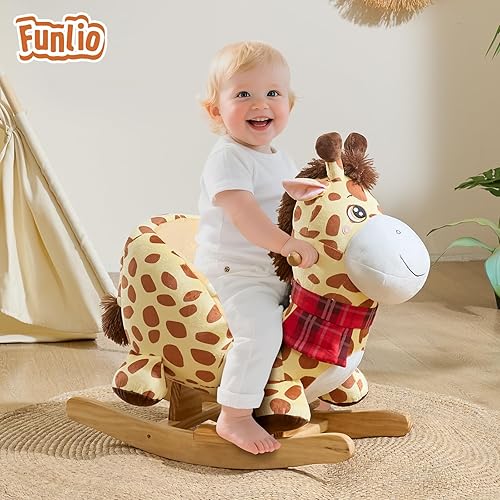 【We Focus on Every Safety Detail】FUNLIO dino rocking horse has passed CPC and CE certification. Non-slip handles designed for tiny hands, helping babies hold on comfortably and safely while rocking. For the bottom of the rocking horse, we have added pedals so that babies can play happily. For the rocking base, we have designed a 20° angle to restrict the rocking range to a safe one, to prevent falling. Note: To ensure safety, please use it under adult supervision.