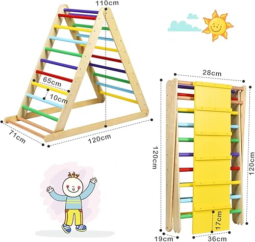 【Sturdy & Durable Construction】Made of natural and solid beech, this toddler climbing ladder ensures great sturdiness and durability for long lasting use and can hold up to 132 lbs, suitable for kids aged 6 months to 6 years. Besides, the triangular structure and premium metal connections enhance the stability of this ladder and prevent toppling over to hurt your kids.