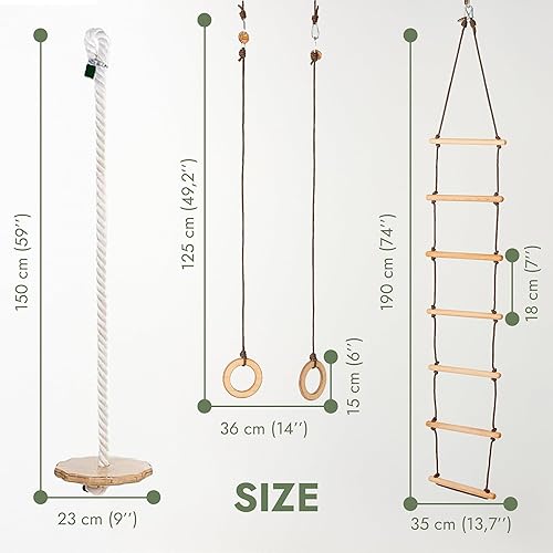 COMPREHENSIVE SKILL DEVELOPMENT: Watch your child's physical abilities flourish as they engage with different equipment - the climbing ladder enhances grip and coordination, while the gymnastics rings develop upper body strength and balance.