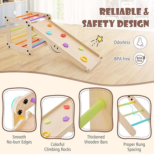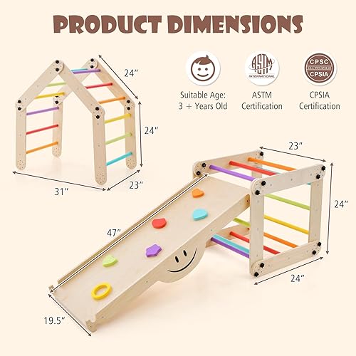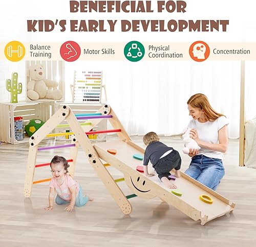 【Perfect Montessori Climbing Toys for Kid’s Growth】: By exploring the pickler triangle climber with ramp, kids will learn to become little adventurers. To some extent, it is beneficial for kid’s early development like balance training, motor skills, physical coordination or concentration. Complied with ASTM and CPSIA certification, the climber with ramp playset is the best gift for kids aged 3+ years.