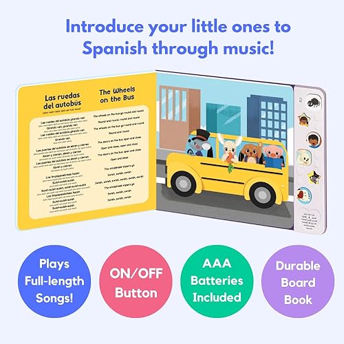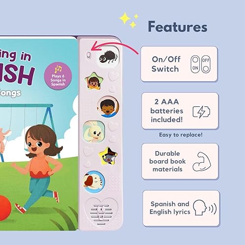 Language Made Playful: Learning Spanish becomes an exciting endeavor with these interactive songs. Your child will naturally learn common phrases and expressions, making this a delightful Spanish kids book that teaches without them even realizing!